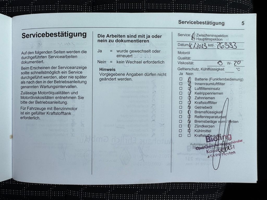 Scheckheft gepflegt